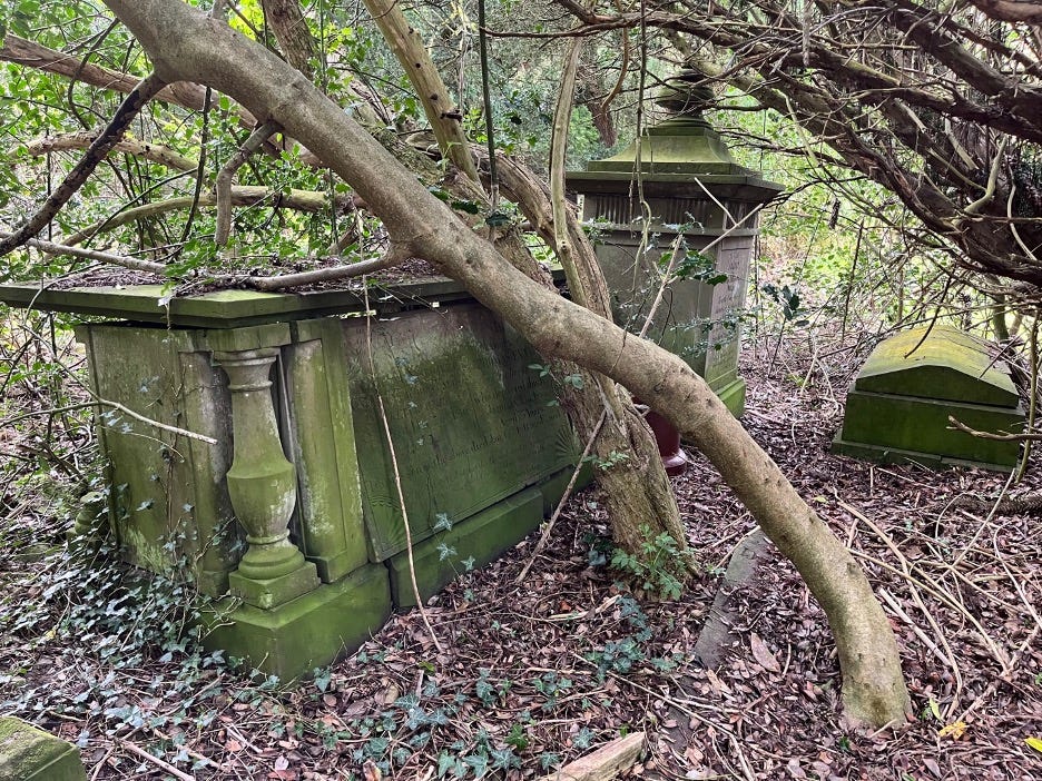 In the tiny town of Llangunllo we stopped by the town church because, as George Mallory said, it was there. The church was refurbished in the late 1800s, but the tower is from Norman times. The town itself is named after the 5th century St. Cynllo who supposedly was a religious hermit and prayed so hard he wore knee prints into rock with his devotion. The church was closed, but the cemetery around it was unique. Funds must be hard to get for the modern church because parts of the graveyard were overgrown with large trees and some of the above ground crypts had collapsed or were broken. It added a very eerie feeling to the church and the look is something that Pam’s mom would have loved.