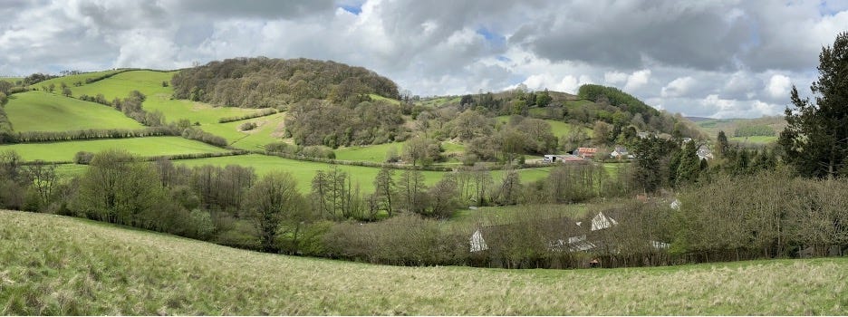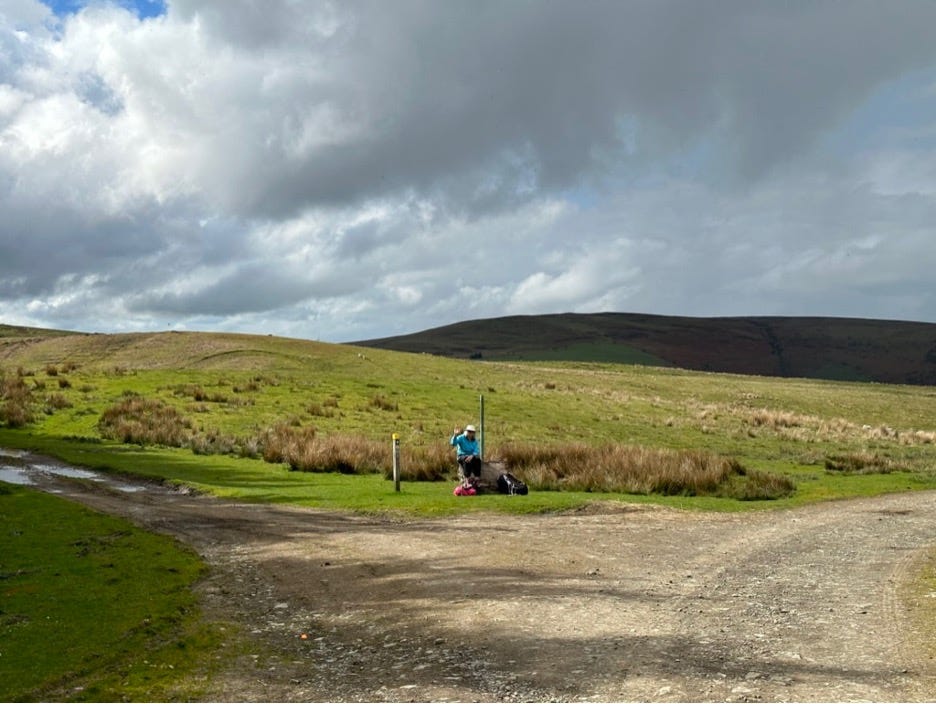 We were supposed to stop at Short Ditch, which is exactly what the name describes. Back in ancient times some fool decided to start digging a ditch out in the middle of nowhere. Some say it was to protect a castle or was a military fortification. They only got about 300 feet of it done and stopped. Personally, I think someone just really liked digging. Right before this odd addition to the landscape we were to stop at a monument that described the area, Beacon Commons, a large chunk of land available to all for grazing their sheep. We came to a hip high stone structure which at one time had something on the front. Even though this was out in the middle of nowhere, where two dirt roads converged, here is where we were supposed to call the taxi to pick us up and take us back to Knighton.