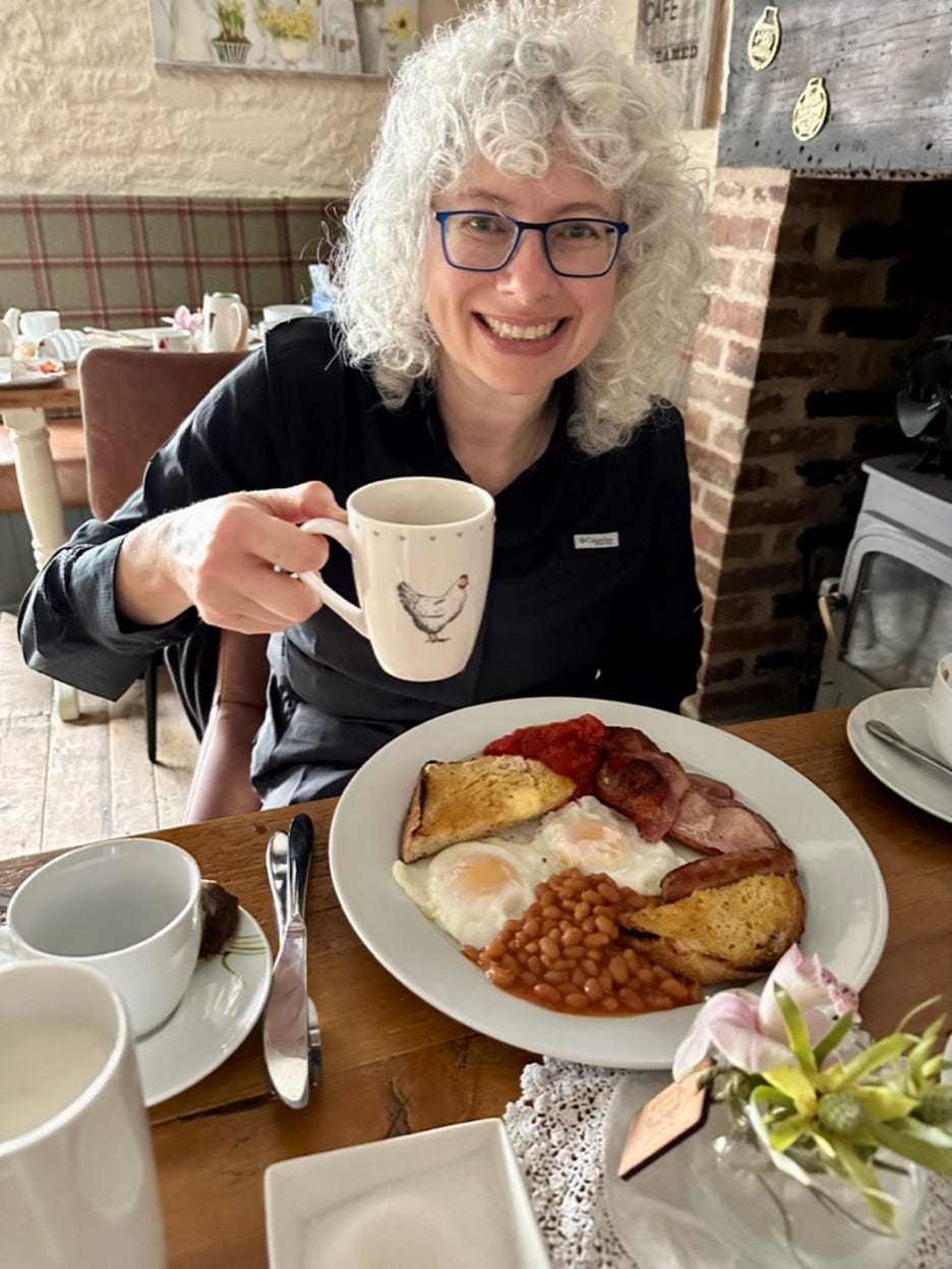 When you are exhausted, the cure is as simple as a good sleep. While Pam had a bit of trouble falling asleep, I slept the sleep of the dead, though I assure you, I am not dead. In Spain, breakfast is a slice of toast but in England they do it big. The full Monty is over easy eggs, sausage, bacon, toast, stewed tomatoes, and bake beans. Even though we haven’t walked a mile, I ate it all because we are Americans, and a clean plate is required.