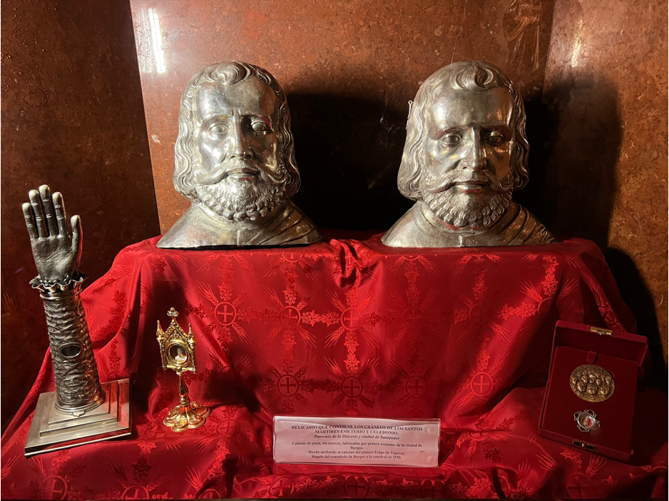 They also had a display of the relics from two martyred saints associated with the church: Emeterio and Celedonio. Both were Roman soldiers who were decapitated for professing their Christian faith on March 3, 298. Celedonio also is the patron saint of Santander, the city of Calahorra, and the province of La Roija. In 1536, when Spain was rolling in the silver from the New World, the church commissioned pure silver busts to contain the craniums of the martyrs. What was amusing to me was that the busts looked exactly like perfectly, proper gentleman living in 1536.