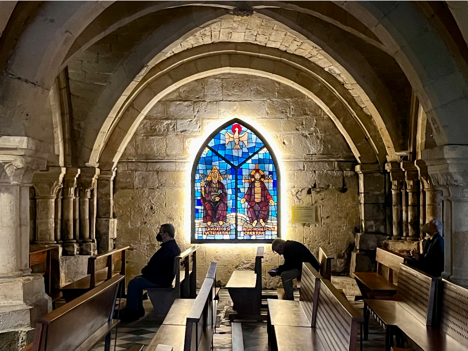 Behind our hotel was the Catedral de Nuestra Señora de la Asunción de Santander, one of those giant churches Spain has in every town bigger than 15 people. When we came to an entrance, we went in, but this church was so much smaller than what we expected. This church was still several times the size of anyone you’d find in America. After a few minutes, we learned we were in the Iglesia de Cristo, which was a “small” additional chapel built under the main chapel. This 102 by 59 foot room looked just like a regular church, but instead of being 10’s of stories tall, was only about 1.5 stories tall. So it gave the whole place the feel of in intimate, personal place of worship. The entire church was, like everything else in Europe, built on top of an old Romain fort and in 1982 an excavation of the flooreveled the old fort. They covered the excavations with a glass floor and it was neat to look at them.