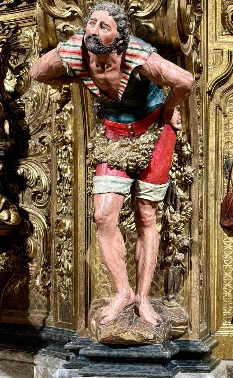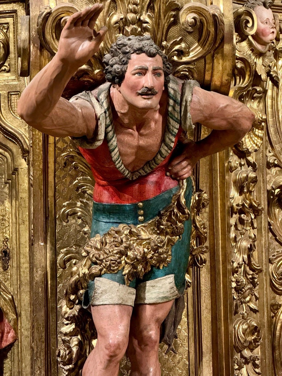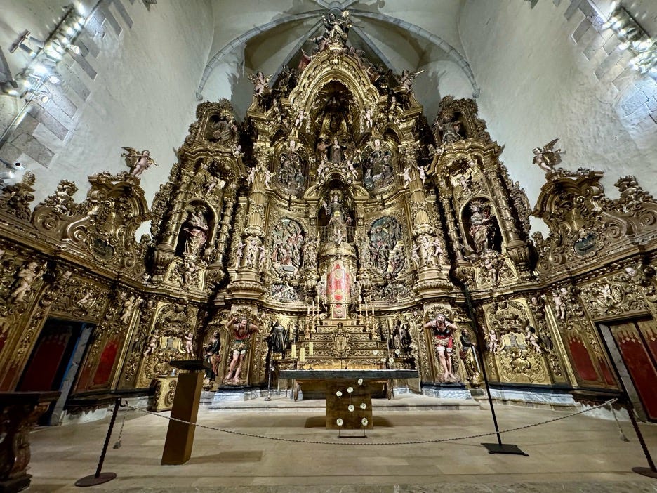 We are in the Catalan region of Spain, and it was a stronghold of the Republicans fighting against Franco’s fascists in the Spanish Civil War. The Republicans were anti-Catholic, because the church aligned with Franco, and their first order of business was to destroy churches. It wasn’t a miracle that this glorious alter survived the war. Even though the townspeople were Republicans, they knew how important and priceless this alter is, so they built a wall in front of it to protect it from destruction.
